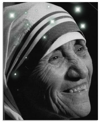 Nascida na república da Macedônia e naturalizada indiana, ganhou o Nobel da Paz em 17 de outubro de 1979 e foi beatificada em 2003. Comprometida com a vida religiosa emitiu votos de pobreza, castidade e obediência fundando a congregação: missionárias da Caridade recebendo um novo nome: Teresa - Santa das Sarjetas. A origem da escolha desse nome residiu no fato de ser em honra a monja francesa Teresa de Lisieux, padroeira dos missionários. Canonizada em 1927 e conhecida como Santa Teresinha.